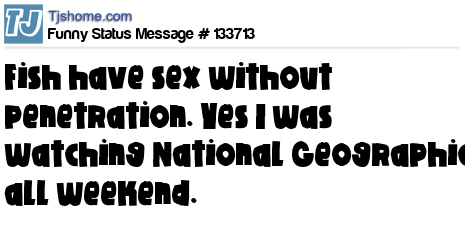 X says Fish have sex without penetration. Yes I was watching National Geographic all weekend.