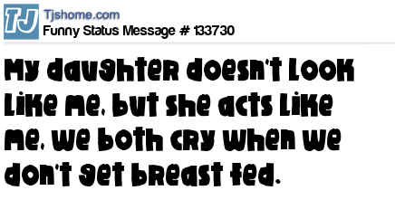 X My daughter doesn't look like me, but she acts like me, we both cry when we don't get breast fed.