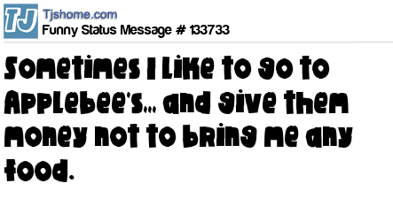 X has Sometimes I like to go to Applebee's,,, and give them money not to bring me any food.