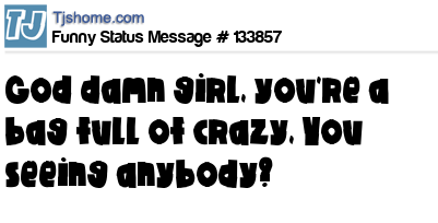 X says God damn girl, you're a bag full of crazy, You seeing anybody?