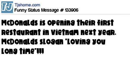 X says McDonalds is opening their first restaurant in Vietnam next year. McDonalds slogan "loving you long time"!!!