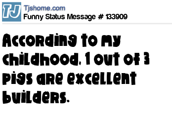 X says According to my childhood, 1 out of 3 pigs are excellent builders.