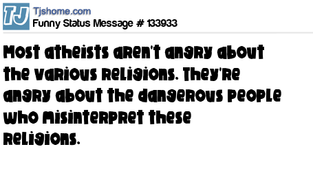 X says Most atheists aren't angry about the various religions. They're angry about the dangerous people who misinterpret these religions.
