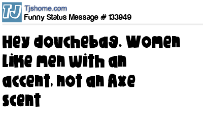 X says Hey douchebag. Women like men with an accent, not an Axe scent