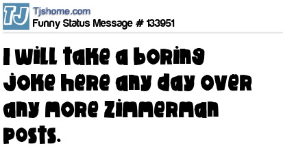 X says I will take a boring joke here any day over any more Zimmerman p0sts.
