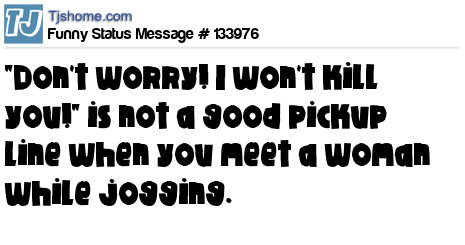 X says "Don't worry! I won't kill you!" is not a good pickup line when you meet a woman while jogging.