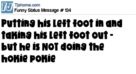 - # 55225 I tried the "Hokey Pokey" put my left foot in; took my left foot out... Mofo still won't shut up. Ain't that what it's all about?