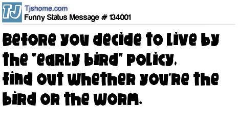 - # 140398 Sure the early bird gets the worm, but what does that say about the worm? He got up early too... Well, the point is,,, Ummm.
