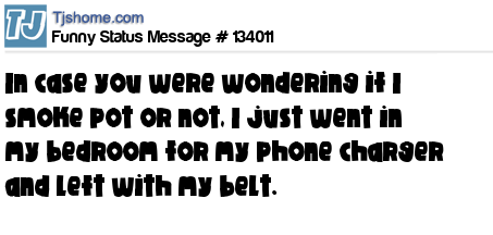 X says In case you were wondering if I smoke pot or not, I just went in my bedroom for my phone charger and left with my belt.