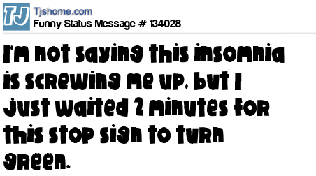 X I'm not saying this insomnia is screwing me up, but I just waited 2 minutes for this stop sign to turn green.