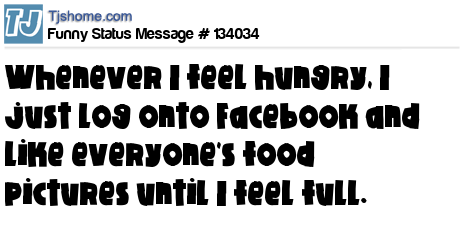 X Whenever I feel hungry, I just log onto Facebook and like everyone's food pictures until I feel full.