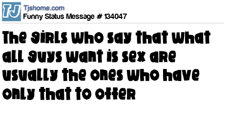 - # 119418 The girls that say that all guys want is sex, are usually the ones who have only that to offer.
