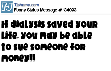 X If dialysis saved your life, you may be able to sue someone for money!!