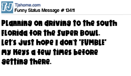 X is planning on driving to the south Florida for the Super Bowl. Let's just hope I don't "FUMBLE" my keys a few times before getting there.