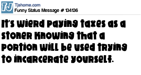 X says It's wierd paying taxes as a stoner knowing that a portion will be used trying to incarcerate yourself.