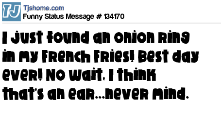 X says I just found an onion ring in my French Fries! Best day ever! No wait, I think that's an ear...never mind.