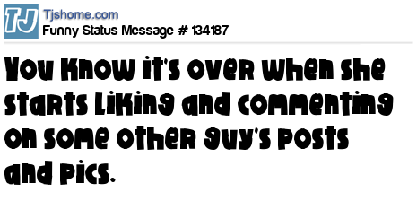 X says You know it's over when she starts liking and commenting on some other guy's posts and pics.