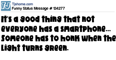 - # 195783 It's a good thing that not everyone owns a smartphone..Someone has to HONK when the light turns green.