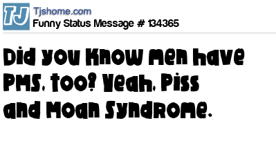 X Did you know men have PMS, too? Yeah, Piss and Moan Syndrome.