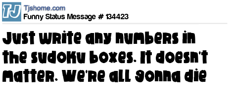 - # 134443 Just write any numbers in the sudoku boxes. It doesn't matter. We're all gonna die.