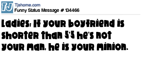 X says Ladies; If your boyfriend is shorter than 5'5 he's not your man, he is your minion.