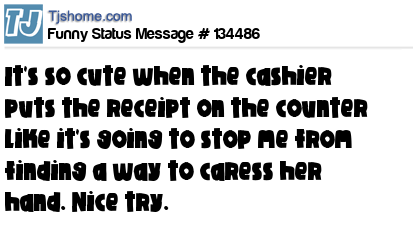 X says It's so cute when the cashier puts the receipt on the counter like it's going to stop me from finding a way to caress her hand. Nice try.