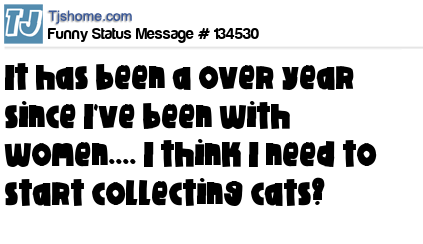 X It has been a over year since I've been with women.... I think I need to start collecting cats?