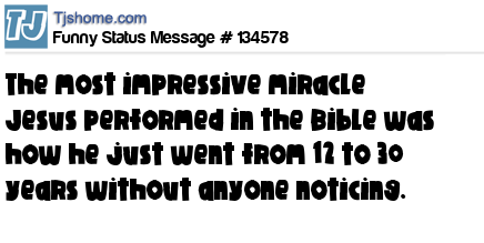 X says The most impressive miracle Jesus performed in the Bible was how he just went from 12 to 30 years without anyone noticing.