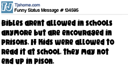 - # 24278 Kids can't read the Bible in school, but are encouraged to read it in prison. Maybe if we allowed them to read it in school, they might never end up in prison.