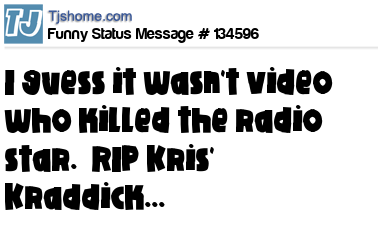 X I guess it wasn't video who killed the radio star. RIP Kris' Kraddick...