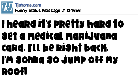 - # 53786 Heard its pretty hard to get a medical marijuana card, I'll be right back, I'm gonna go jump off my roof!