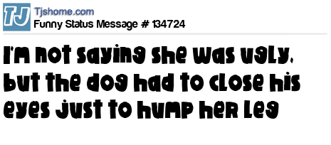 - # 50717 you know your ugly when the dog has to close his eyes to hump your leg