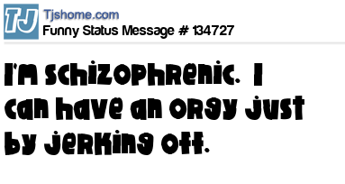 X says I'm schizophrenic. I can have an orgy just by jerking off.