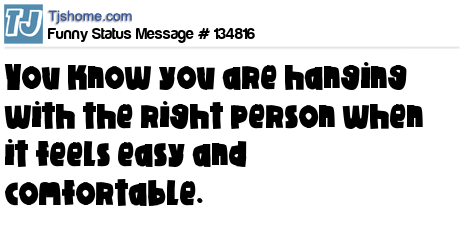 X says You know you are hanging with the right person when it feels easy and comfortable.
