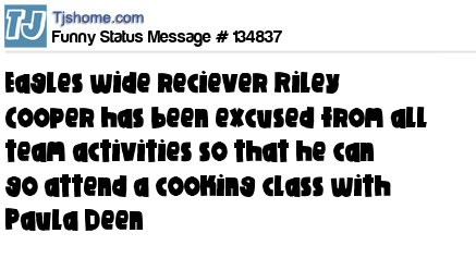 X says Eagles wide reciever Riley Cooper has been excused from all team activities so that he can go attend a cooking class with Paula Deen
