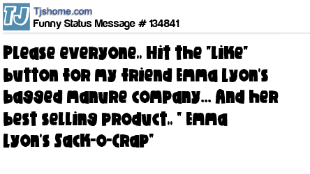 X Please everyone,, Hit the "like" button for my friend Emma Lyon's bagged manure company... And her best selling product,, " Emma Lyon's Sack-o-Crap"
