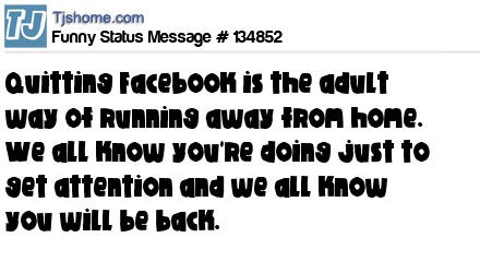 - # 24935 Quitting Facebook is the new, adult version of running away from home. We all know you're doing it for attention and we all know that you'll be back.