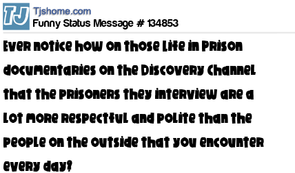 X says Ever notice how on those Life in Prison documentaries on the Discovery Channel that the prisoners they interview are a lot more respectful and polite than the people on the outside that you encounter every day?