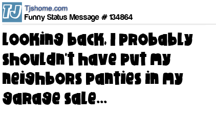 X Looking back, I probably shouldn't have put my neighbors panties in my garage sale...