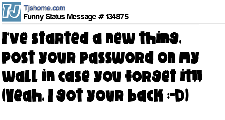 X says I've started a new thing, post your password on my wall in case you forget it!! (Yeah, I got your back :-D)
