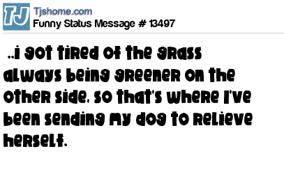 X ..i got tired of the grass always being greener on the other side, so that's where I've been sending my dog to relieve herself.