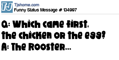 X  Q: Which came first, the chicken or the egg? A: The Rooster...