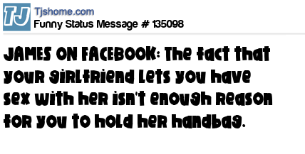 X says JAMES ON FACEBOOK: The fact that your girlfriend lets you have sex with her isn't enough reason for you to hold her handbag.