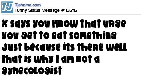 X says X says you know that urge you get to eat something just because its there well that is why I am not a gynecologist
