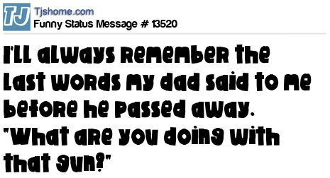 X I'll always remember the last words my dad said to me before he passed away. "What are you doing with that gun?"