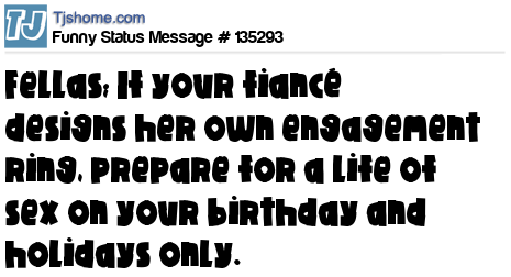 X says Fellas; If your fiancé designs her own engagement ring, prepare for a life of sex on your birthday and holidays only.