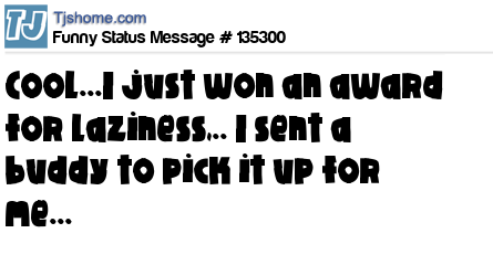 - # 179215 If I won the award for laziness, I would send somebody to pick it up for me.