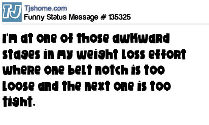- # 144221 That point in your diet when one belt hole is too tight and the next one is too loose.