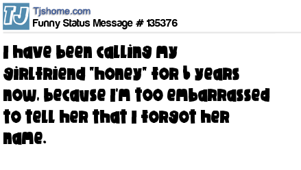 X says I have been calling my girlfriend "honey" for 6 years now, because I'm too embarrassed to tell her that I forgot her name.