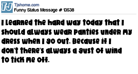 X I learned the hard way today that I should always wear panties under my dress when I go out. Because if I don't there's always a gust of wind to tick me off.
